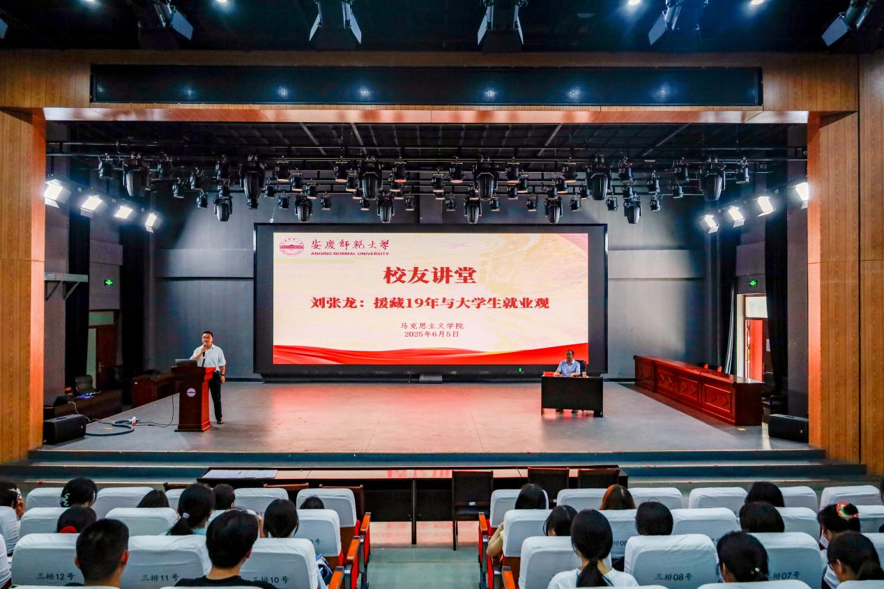 从长江之滨的青涩学子到雪域边疆的育人先锋,他把十九年的时光化作了扎根西藏、支教报国的铿锵足印……6月5日,beat365在线唯一官网在传媒学院演播厅举办校友讲堂,特邀2004届思想政治教育专业毕业生、“全国十佳优秀援教教师”刘张龙作题为“人生有多少个19年——从援藏支教19年的经历谈大学生的就业观”的主题讲座,学院80余名师生到场聆听。
