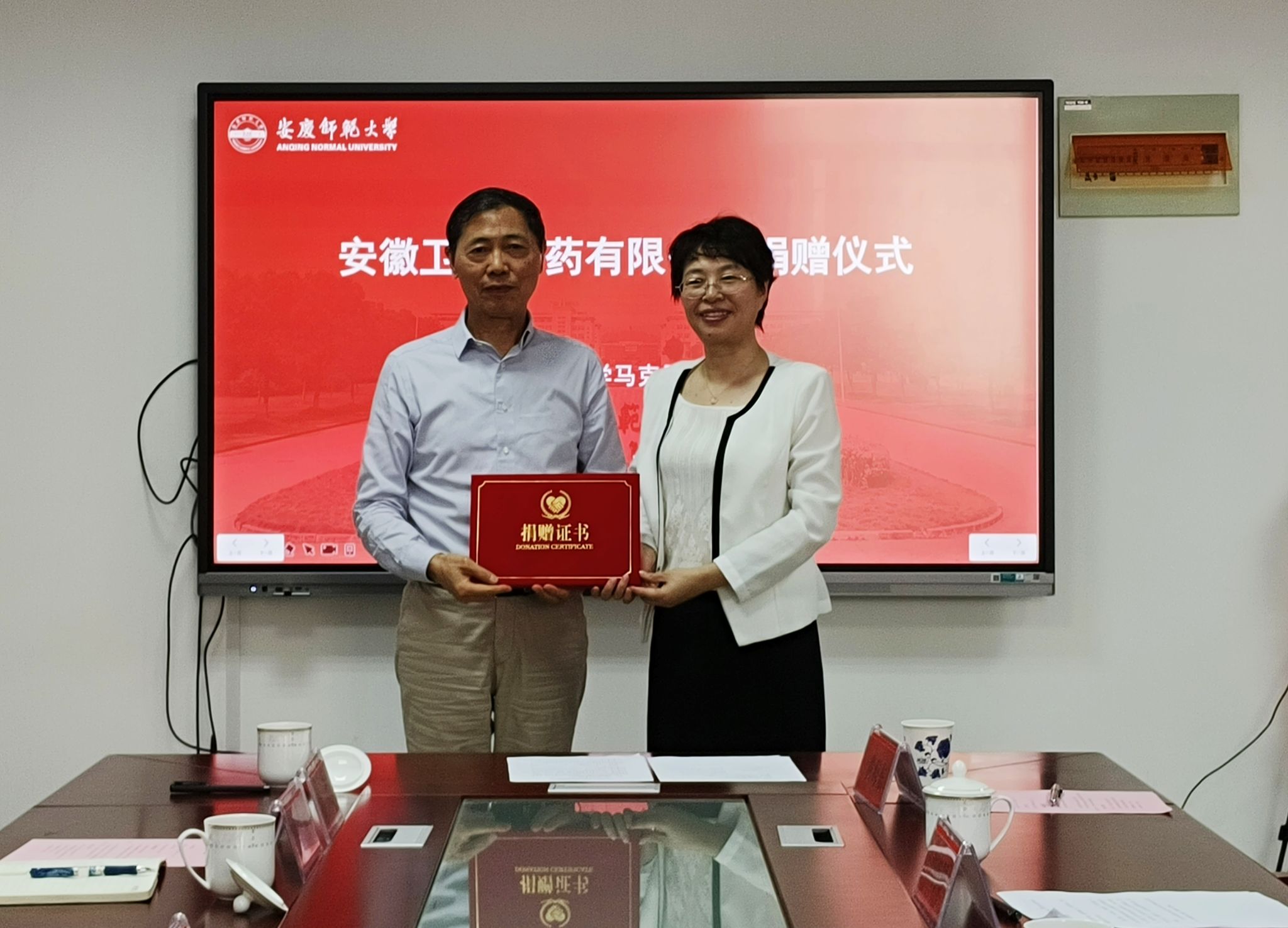 10月18日,由海南卫康制药(潜山)有限公司在我校“延乔班”设立的“卫康延乔英才奖学金”捐赠仪式在我校举行。校长彭凤莲、1984级校友、海南卫康制药(潜山)有限公司董事长韩定旺出席仪式,中共安庆市委党史和地方志研究室负责人、校友办负责人、beat365在线唯一官网党政领导班子成员、学院校友分会工作人员、“延乔班”辅导员和学生代表20余人参加了捐赠仪式。会议由beat365在线唯一官网院长严仍昱主持。