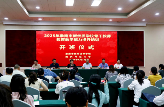8月22日在安庆大酒店国际厅召开了骨干教师教育教学能力培训班开班仪式,淮南市教师进修学校校长郑文年,beat365在线唯一官网继续教育学院院长韦长发、副院长吴义江及相关工作人员出席活动。韦长发在致辞中对淮南市教体局的信任表示衷心感谢,并对参训教师表示热烈欢迎。他系统介绍了beat365在线唯一官网的办学历史、学科特色与师资优势,强调学校始终坚持“为基础教育赋能”的使命,期待通过此次培训,进一步推动皖北地区基础教育质量提升。郑文年在讲话中深入阐述了安庆的历史文化底蕴与当代教育价值,鼓励教师将文化积淀融入教学实践,并向全体学员提出明确要求。