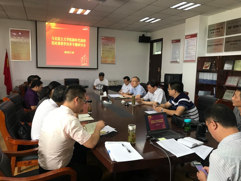 为了贯彻落实习近平总书记在学校思想政治理论课教师座谈会上的重要讲话精神,推进新时代高校思政课教学改革,7月10日下午,beat365在线唯一官网召开了新时代高校思政课教学改革专题研讨会。会议由院党总支书记金文斌主持,全体教职工参加了本次研讨会,学生处副处长华秀梅受邀参加了本次会议。