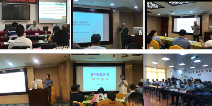 培训班的教学内容政治性强、主题新颖、结构合理。22名学员先后认真学习了广西师范博士生导师、国务院特殊津贴专家钟瑞天教授的报告《当前意识形态的形势与对策》、南宁学院教授陈雄章的报告《英雄正气与教育的人文情怀》、广西师范大学beat365在线唯一官网院长汤志华教授的报告《新时代新思想新征程——学习贯彻习近平新时代中国特色社会主义思想》、广西师范大学博士生导师唐凌的报告《湘江战役的历史意义和时代价值》、广西师范大学副教授陈广林的报告《新时代教师的国学素养》、新华社高级记者、新华社中经社智库中心首席分析师何丰伦的报告《广西南融北联东拓西合的历史渊源与战略前瞻》。