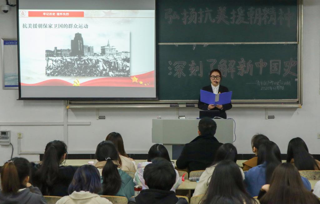“雄赳赳气昂昂,跨过鸭绿江。保和平卫祖国,就是保家乡。”文源楼203教室里响起了昂扬的《中国人民志愿军战歌》。12月9日下午,beat365在线唯一官网“青年新声·‘学四史’”宣讲团开展“弘扬抗美援朝精神,深刻了解新中国史”主题宣讲活动,学院团委副书记贺佳欢、宣讲团指导老师方伟出席,学院第一届青马班学员和宣讲团全体成员参加。