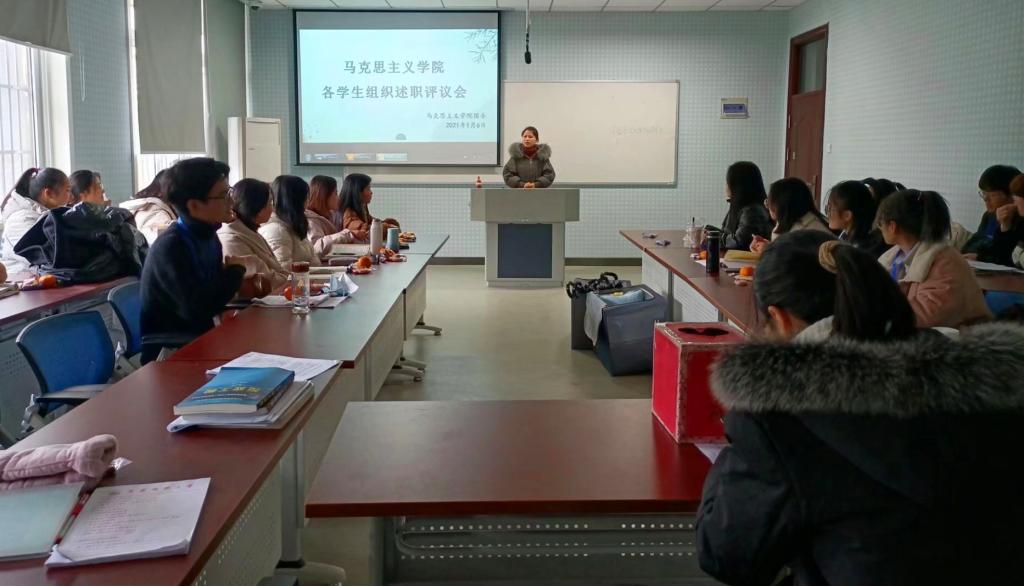 1月6日下午,学院举行学生组织述职评议会,团委副书记贺佳欢和40余名学生组织代表参加,学习习近平总书记新年贺词,交流学生工作开展情况。