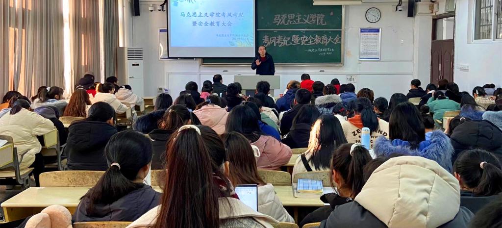 金文斌在会上号召同学们诚信考试的同时,强调假期安全。他说:“学生安全问题是社会、学校、家庭非常关注的问题。临近寒假,同学们需要牢记‘健康、平安、成长、成才’这八个字,特别注意防火防滑和交通安全问题,到家后要及时向辅导员报平安。”结合当前疫情防控,他对同学们提出要求,大家在做好自身安全防护的同时也要积极承担社会责任,主动参加一些乡村社区的志愿工作,为家乡建设贡献自己的一份力量。