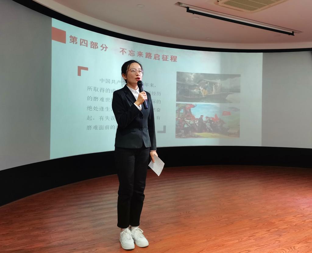 此次党史宣讲采用线下现场的方式进行,主要从“开天辟地一声雷”、“革命征程共携手”、“改革建设鸣高歌”、“不忘来路启征程”四个部分依次展开,介绍党的奋斗历程。一百年栉风沐雨,一百年岁月峥嵘,一百年初心不改,一百年砥砺前行。“伟大的中国共产党万岁!”宣讲人的话音进一步激发同学们爱国的热情,宣讲现场掌声一片,活动气氛达到高潮。