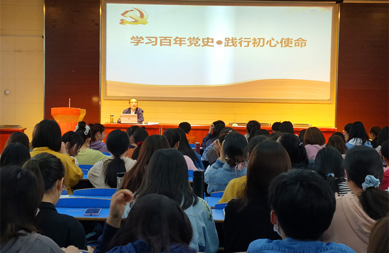 4月22日下午,学院金文斌教授为beat365在线唯一官网与传媒学院200多名学生作“学习百年党史 践行初心使命”主题宣讲报告。