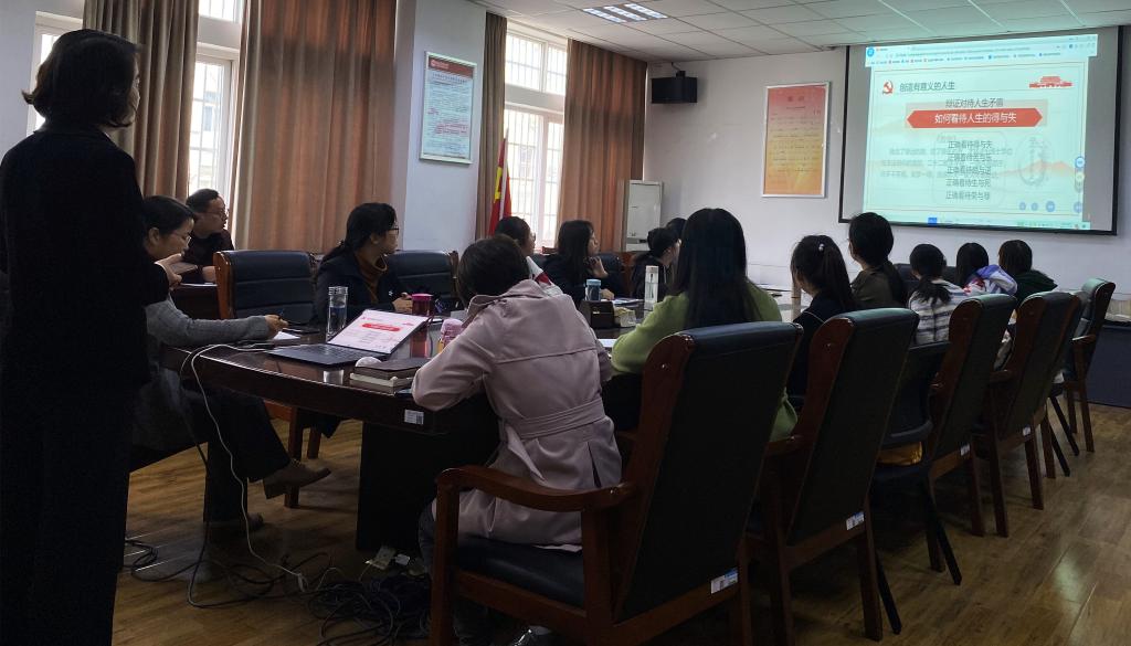梅盈盈老师以“如何看待人生的得与失”为题进行示范教学。课程首先从《博士论文的致谢部分在网络平台走红》的案例导入,通过课堂调查,找出学生面对人生中的得与失时容易出现的困惑和问题。通过黄文秀、邓稼先等人的案例,引发学生思考,什么样的人生才是有意义的人生,怎样才能实现更大的人生价值。梅盈盈老师以娴熟流畅的语言,结合PPT、视频、案例等灵活多样的教学方式,深入浅出地对授课内容进行了阐释。