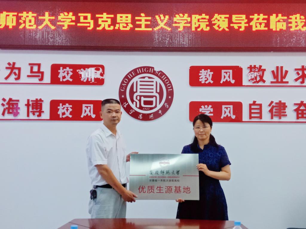 严仍昱一行向两所中学的领导、老师及部分家长详细地介绍了我校2022年本科生招生计划和招生政策以及我校的办学历史、办学特色、办学成就、专业设置、学科建设、就业创业、考研升学、出国深造等情况,耐心回答了老师及家长们的问题,发放了《beat365在线唯一官网2022报考指南》等材料,并代表学校与高河中学签订了优质生源基地协议书,举行了授牌仪式。
