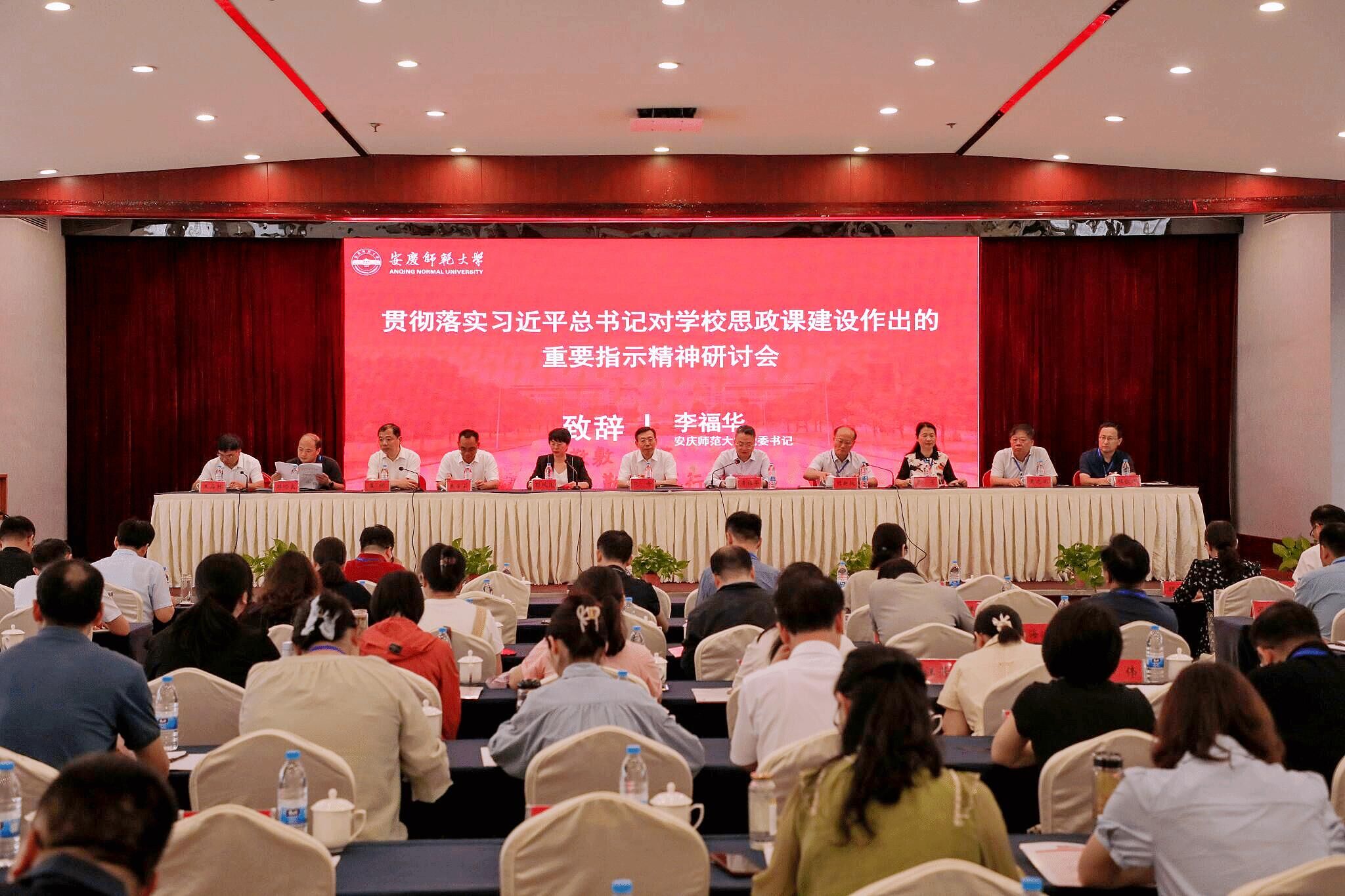 6月28日至30日,贯彻落实习近平总书记对学校思政课建设作出的重要指示精神研讨会在我校召开。安徽省委教育工委副书记范奇、校党委书记李福华、校长彭凤莲和安庆市政府、安徽省社科联、《安徽日报》理论部相关领导出席会议。来自上海交通大学、中国科学技术大学、华中师范大学、安徽大学等省内外大中小学共90多位专家学者、教师参加会议。