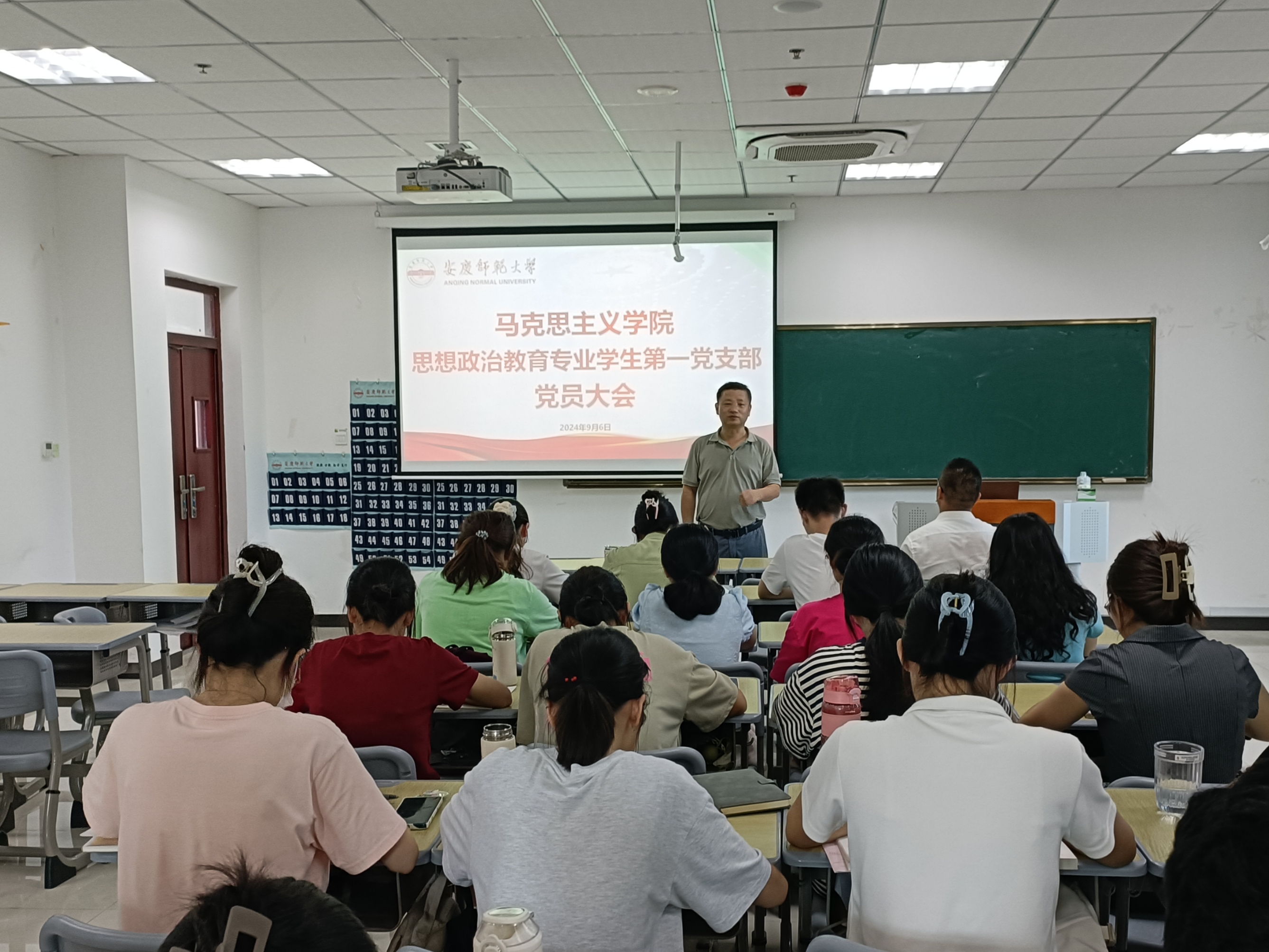 9月6日,beat365在线唯一官网思想政治教育专业学生第一党支部在Q楼308教室召开党员大会,支部书记田梦甜与支部全体党员参加,学院党委副书记邹斌列席指导。