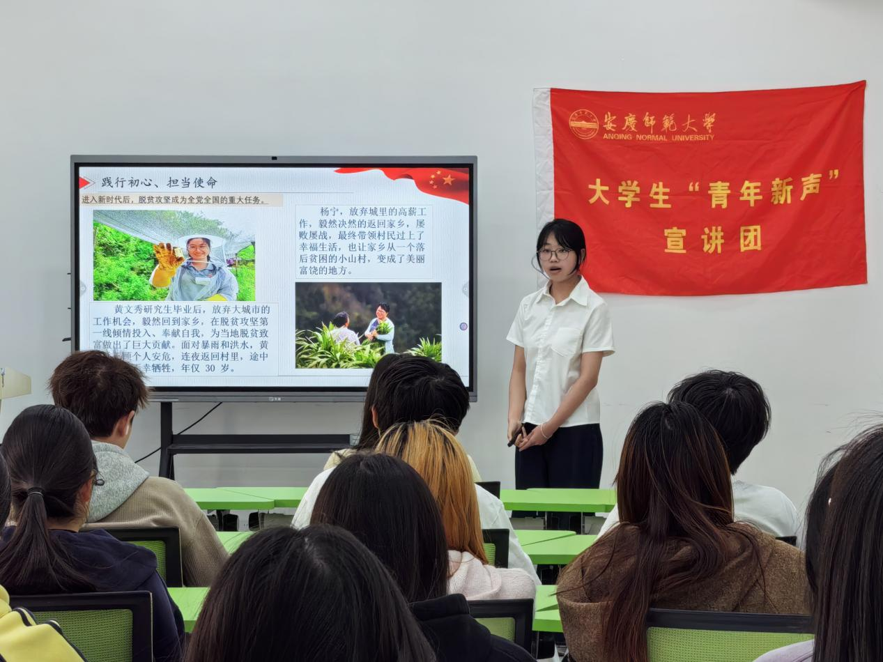 4月13日,大学生“青年新声”理论宣讲协会在学校一站式就业宣讲教室开展伟大建党精神宣讲活动,宣讲面向全校百余名学生。