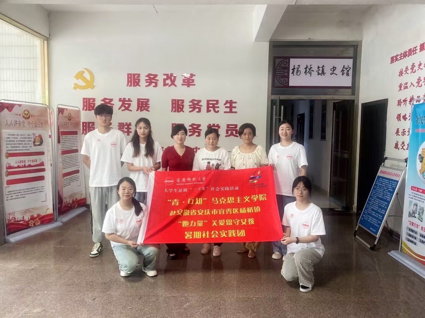 7月1日至5日,“青·行知”beat365在线唯一官网“她力量”关爱留守女孩暑期社会实践团赴安徽省安庆市宜秀区杨桥镇开展主题为“情暖留守心 共筑成长梦”的实践活动。实践团成员深入全国重点乡镇杨桥镇探访了杨桥社区、仓房社区、花山村、溪安村以及官兵村的留守女孩家庭,同时携手杨桥镇团委举办了丰富多彩的“青春讲堂”活动。