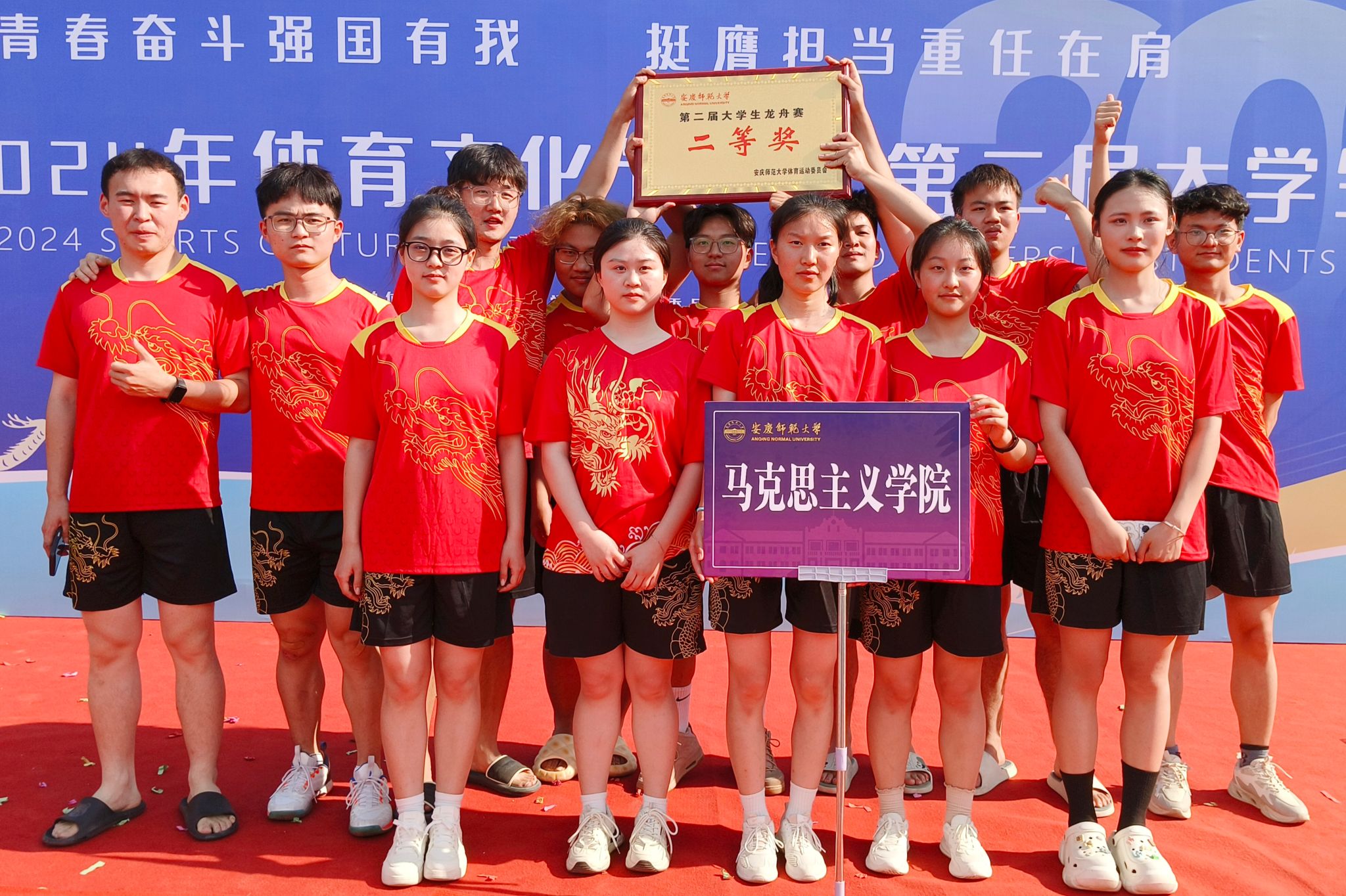 5月29日,beat365在线唯一官网在双龙湖畔举办2024年体育文化节暨第二届大学生龙舟比赛,共有来自全校的9支队伍、近百名选手在水上开桨竞渡、争拔头筹。经过两轮的激烈角逐,beat365在线唯一官网龙舟队荣获二等奖。
