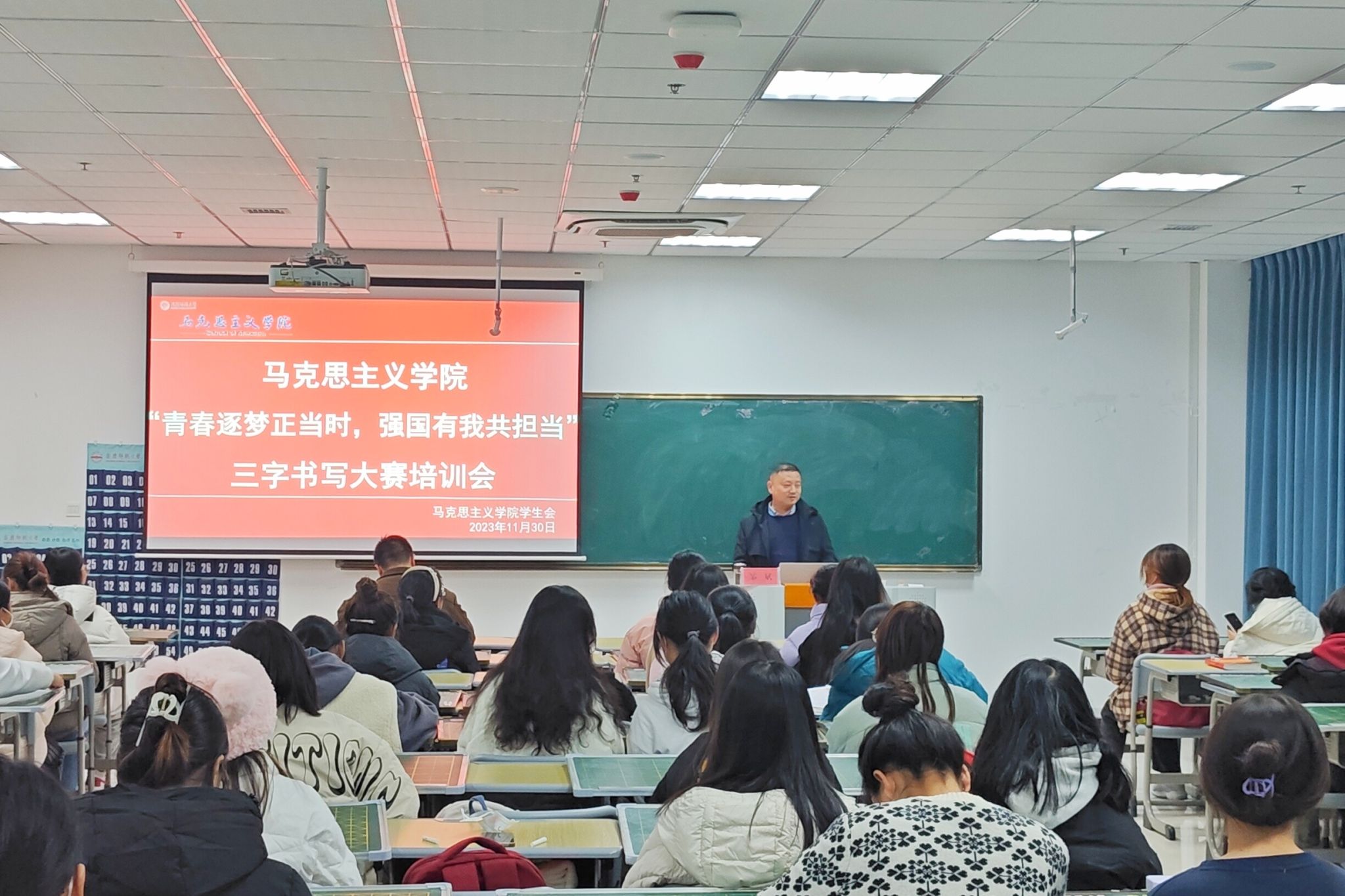 11月30日,学院在Q楼308教室开展“青春逐梦正当时,强国有我共担当”“三字”书写大赛培训会。本次培训会邀请学院党委副书记邹斌为全体参赛学生进行赛前培训。