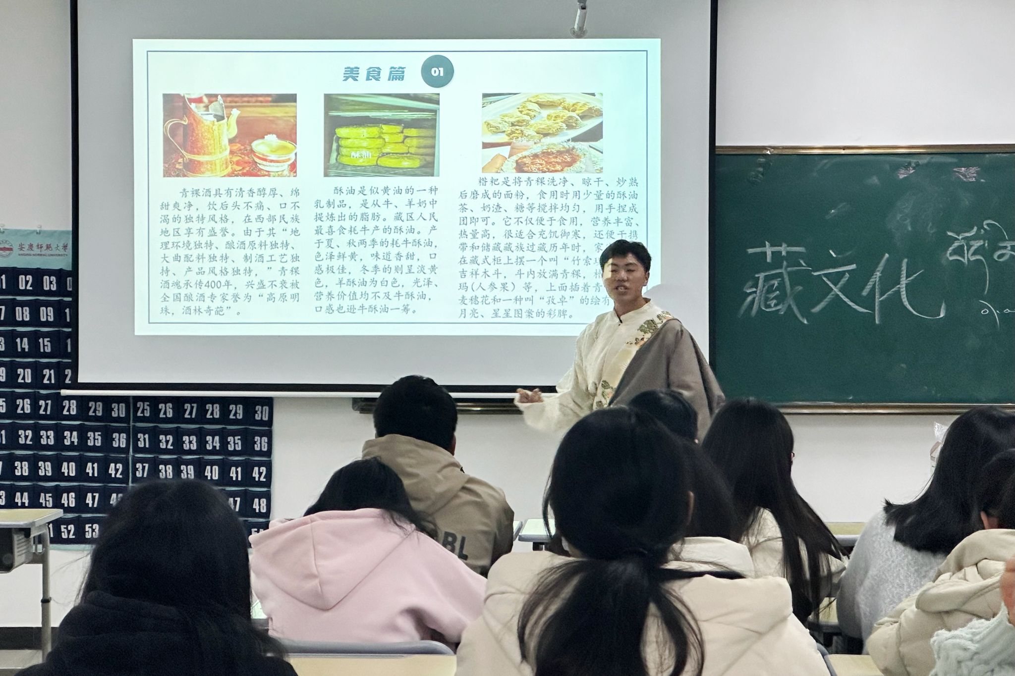 12月9日,“敬敷思源”志愿服务队在Q楼308教室举办“藏文化知识介绍”活动,志愿服务队指导老师赵涵出席活动,学院学生参加此次活动。