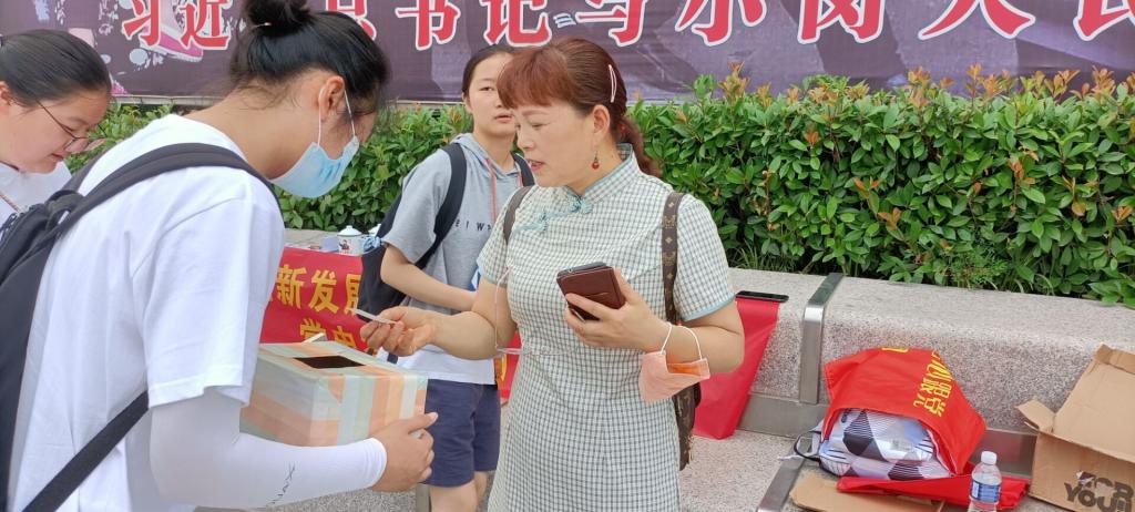 7月16日,为深化党史学习教育,营造学党史、悟思想、办实事、开新局的良好氛围,学院见证小岗新发展、坚定信心跟党走暑期社会实践团带着一系列精美的小礼品早早来到小岗村广场开展党史答题活动。“这种学习党史的话动形式太棒了!参与者既学习了党史知识,又得到了城市风光明信片和小纪念品!”游客陈女士赞叹道。