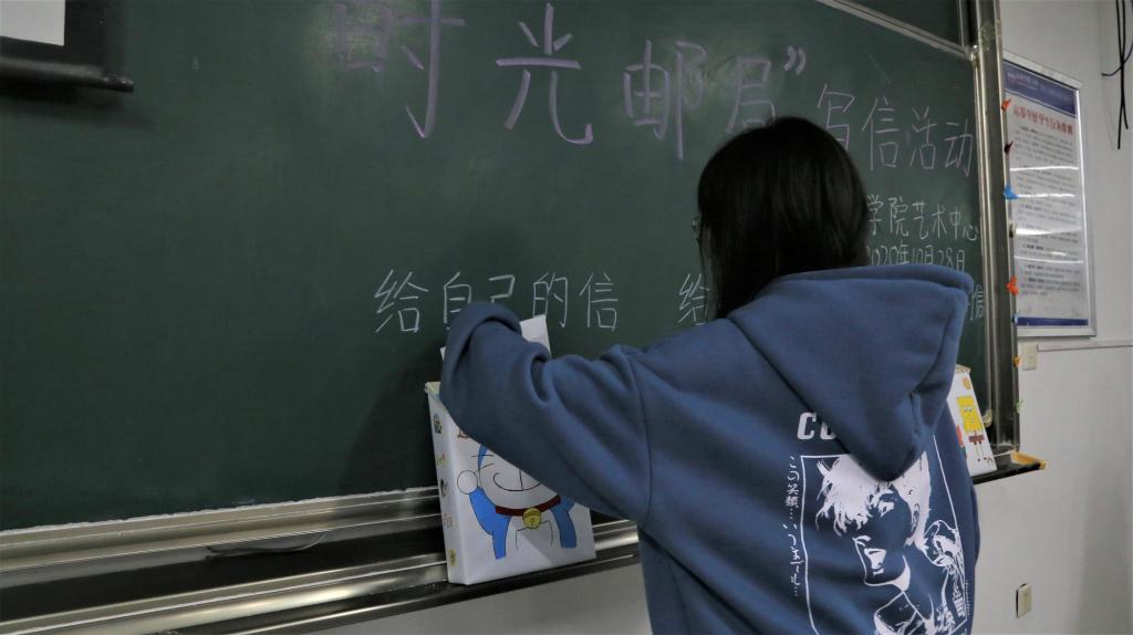 “我写信的对象是未来的自己,期望能拥有一个充实的大学生活。”第一个将书信投入“时光邮局”的是思想政治教育专业2020(3)班的宛杨冬,他把对自己未来的期待和大学四年的规划写入信纸,以勉励自己继续努力、拼搏。“进入一个新的环境和新的人生阶段,心里不免有些迷茫,但我还是希望能够利用好大学四年的时光,给自己创造一个光明的前途。”他说。