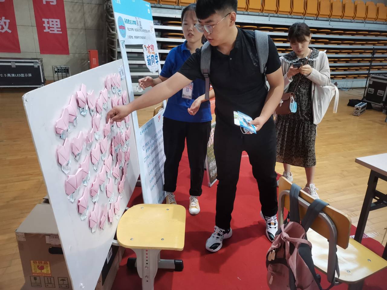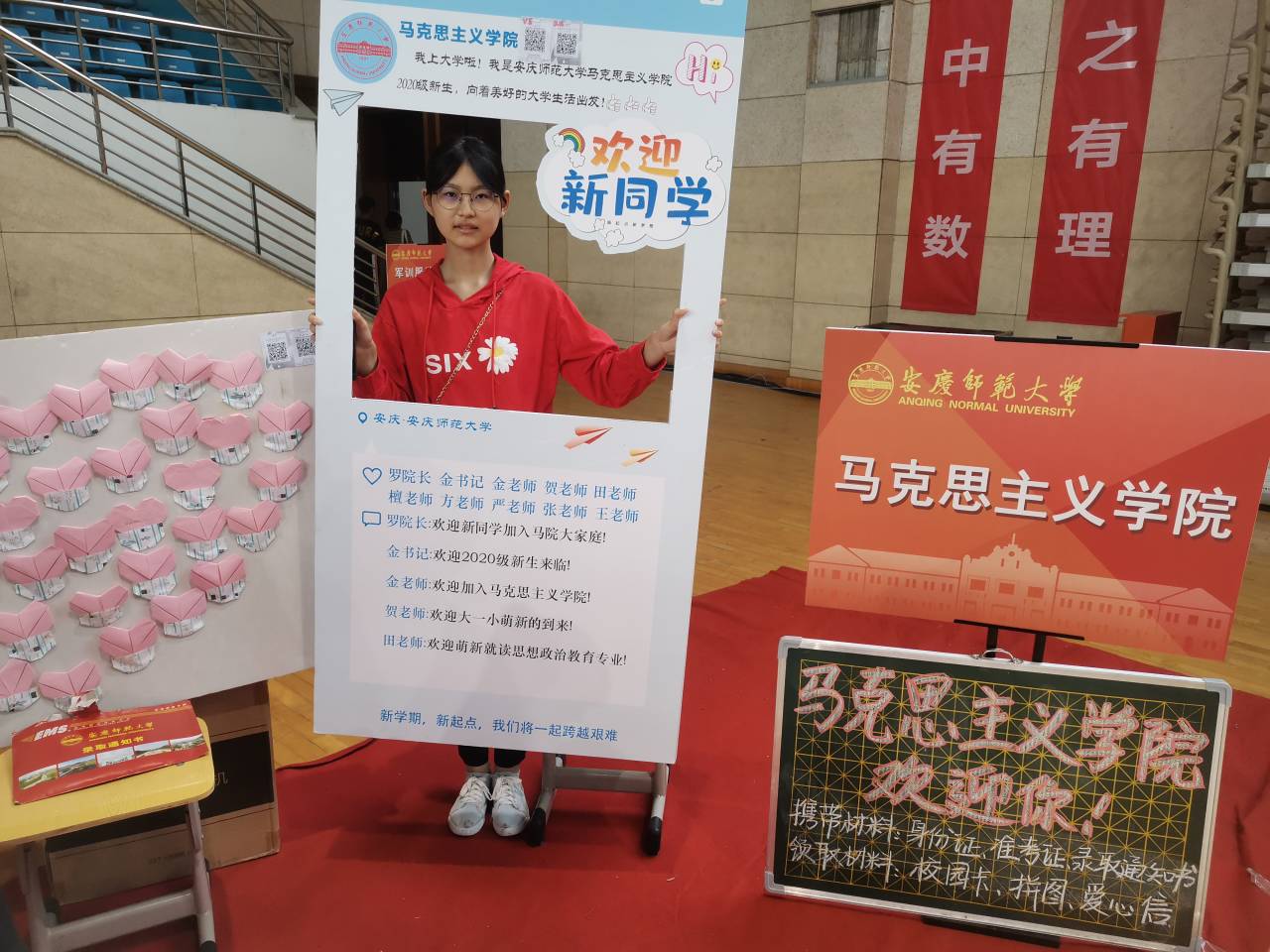 “欢迎加入我们的大家庭!”“祝愿你们有个美好充实的大学生活!”“希望你们在大学里能取得满意的人生答卷哦!”……入目是一封封浅红色的爱心书信,爱心书信是学院历年来迎新的传统,也是由学长学姐们亲手书写送给新生踏入校园的第一份“见面礼”。