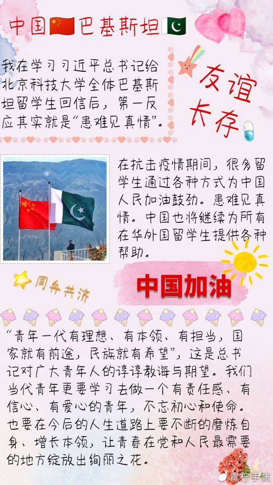 学院学生会制作了PPT、手账等,利用在线直播召集全体成员集中学习回信内容及回信背景,并引导大家就习近平总书记的回信内容,结合当下和自身实际有序展开交流。“学习这篇回信后,我深知,作为新时代青年,要勿忘初心、夙愿不改,牢记总书记叮嘱,积极推动人类命运共同体建设,努力成为有理想、有追求、有担当的大学生,奋力投身于中国特色社会主义建设的实践中,用青春书写无愧于时代、无愧于历史的华彩篇章。”这是思想政治教育专业2019级4班李晨的学习心得。