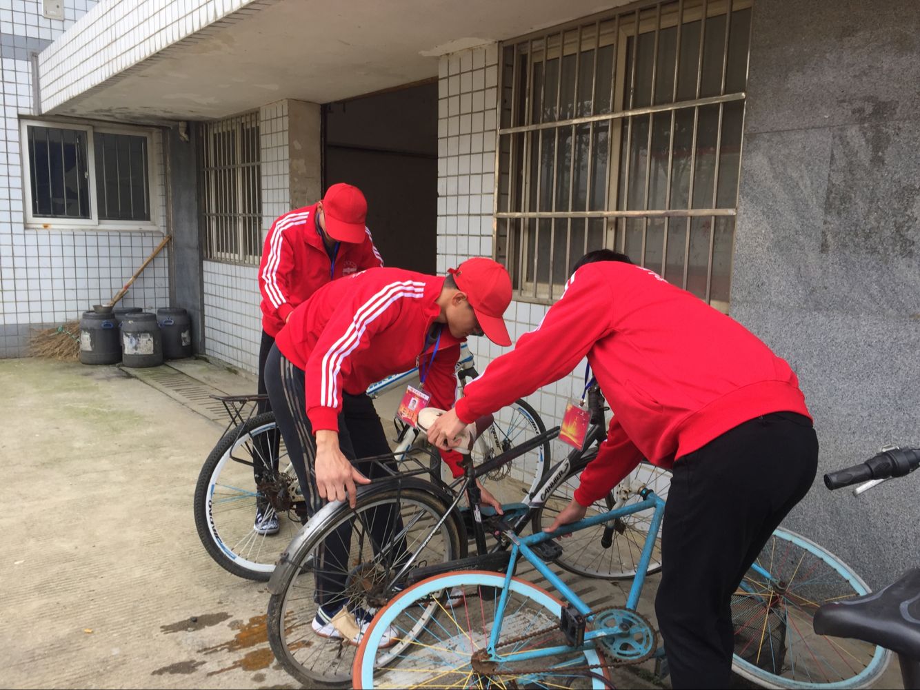 当天下午,学生会全体成员在敬敷广场集合,之后由各部部长带领各自的部员,分别负责不同的区域。东门、西门、南门、宿舍楼和各教学楼门口,他们的身影随处可见。成员们身着统一的服装,将倒下的自行车一辆一辆的扶起,将乱停乱放的自行车一步一步的归位,积极行动、互帮互助。在成员的共同努力之下,校园内的自行车变得整齐有序。